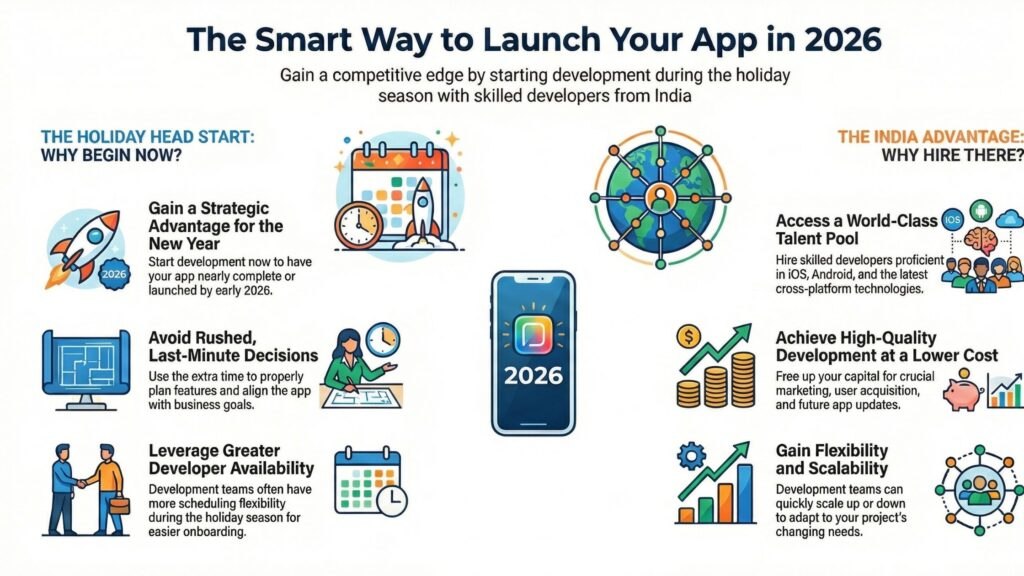 Planning for the future is one of the best ways to position your business for continued success. If you take advantage of the holidays to hire affordable app development services in India to assist you with developing your mobile application, you give your mobile application the tools to succeed during its developmental phase and launch in 2026.